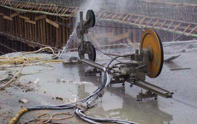 混凝土切開是指選用液壓墻鋸機(jī)、電動(dòng)碟鋸機(jī)、水鉆或許馬路切開機(jī)等東西對(duì)混凝土構(gòu)件、墻體、路面等進(jìn)行切開的施工技能,它具有切開才能強(qiáng),靜力無(wú)損,功率高,選用水冷卻,無(wú)施工粉塵等特色 :切開撤除:繩鋸切開是金剛石繩子在液壓馬達(dá)驅(qū)動(dòng)下繞被切開物高速跋涉研磨然后完結(jié)切開作業(yè)。  運(yùn)用繩鋸設(shè)備對(duì)混凝土切開拆 除···